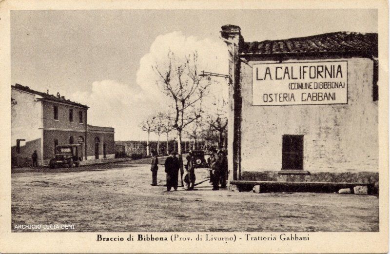 Die Geschichte unseres (La) California reicht bis etwa 1840 zurück, als die Via Aurelia bereits modernisiert war und die einzigen Tavernen zur Erfrischung der Reisenden in Cecina und Donoratico waren. Wo Kalifornien aufgegangen wäre, gab es immer noch nichts, nur eine Kreuzung, die von der Hauptstraße, der Via Aurelia, nach Bibbona mit der neuen Straße führte, die in den letzten Jahren dank der Begradigung eines der vielen Gräben, die von dort absteigen, entstanden war die Hügel. 1840 kam ein gewisser Amerigo Gabbani in die Gemeinde Bibbona, seine erste Stelle war die eines Angestellten der entstehenden Maremma-Eisenbahn. Amerigo kam mit all seinen Verwandten, von denen einige Bettolieri und Osti erfanden, in unsere Stadt. Und so beginnt die Geschichte Kaliforniens, nach einigen Jahren mit dem neugeborenen italienischen Staat trafen auch die ersten offiziellen Standesregister ein; die Zusammenstellung des ersten Gemeinderegisters im Jahre 1865 ist für unsere Geschichte besonders wichtig, weil erstmals der Name La California auf den Ort hinzuweisen scheint, an dem zwischenzeitlich eine von einem gewissen Attilio Fabbri geführte Taverne rechts in der Via Aurelia gestanden hatte an der Kreuzung mit der neuen Straße, die noch nach Bibbona führt. Bevölkerungsregister von 1865